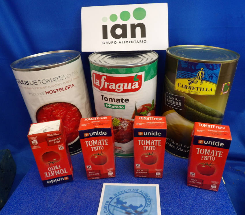 Una gran donación de Tomate La colaboración de la industria agroalimentaria es una pieza esencial en el logro de productos por parte del Banco de Alimentos. Estas empresas nos donan, y ahora más debido a la Ley de Desperdicio, productos descatalagados, retirados de las líneas de venta o próximos a caducar, que además de contribuir