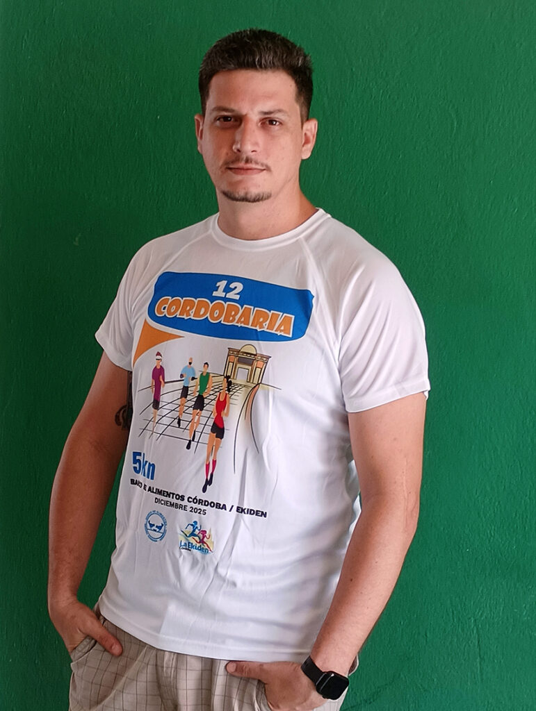 Nos gusta esta foto suya con una camiseta de la carrera que el mismo ha diseñado, y que ya lleva puesta, porque todo está preparado, aunque el evento sea el próximo diciembre.
