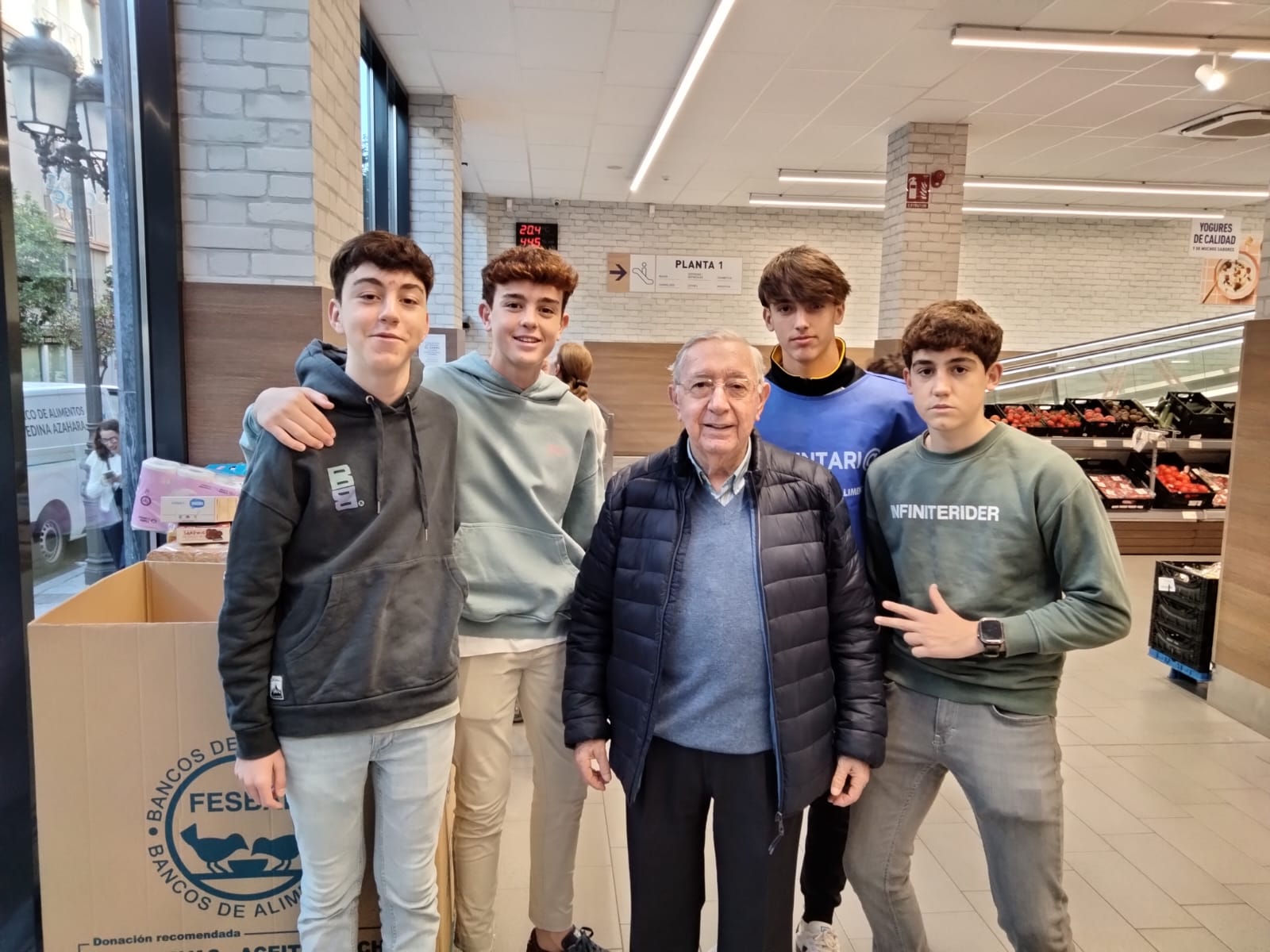 esta voluntaria de 84 años, que marca el limite por arriba, y que por tanto habría que nombrar voluntaria decana, a tantos chicos de centros docentes públicos y privados, a los que hay que fotografiar de espaldas porque no alcanzan la mayoría de edad pero que tienen afán de servicio por encima de todas las garantías legales.